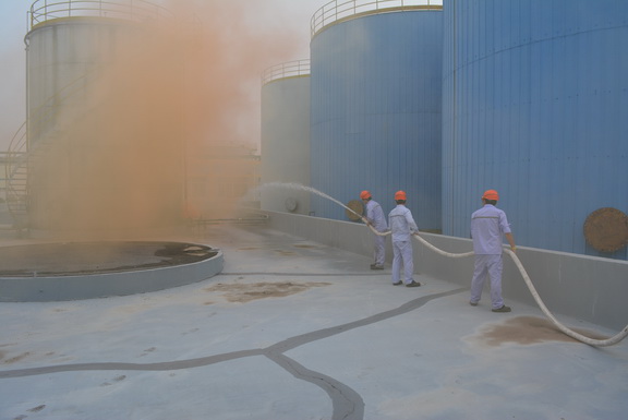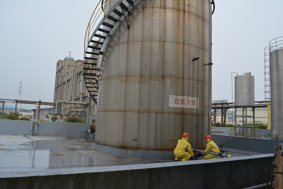 7月2日下午,由公司安全环境部主办的 “2015年重大危险源应急演练” 在双氧水罐区进行。公司总经理助理欧阳可庭任演练现场总指挥。